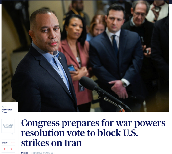这项针对对伊朗举止的“干戈权益决议”,中枢宗旨即是条件总统若赓续或扩雄师事举止,必须预先取得国会授权,而不成再以“延续旧授权”或所谓“片面自保”为由,无穷期扩大作战范围。这标明国会在试图通过轨制本事,将总统重新拉回宪法设定的权益框架内。