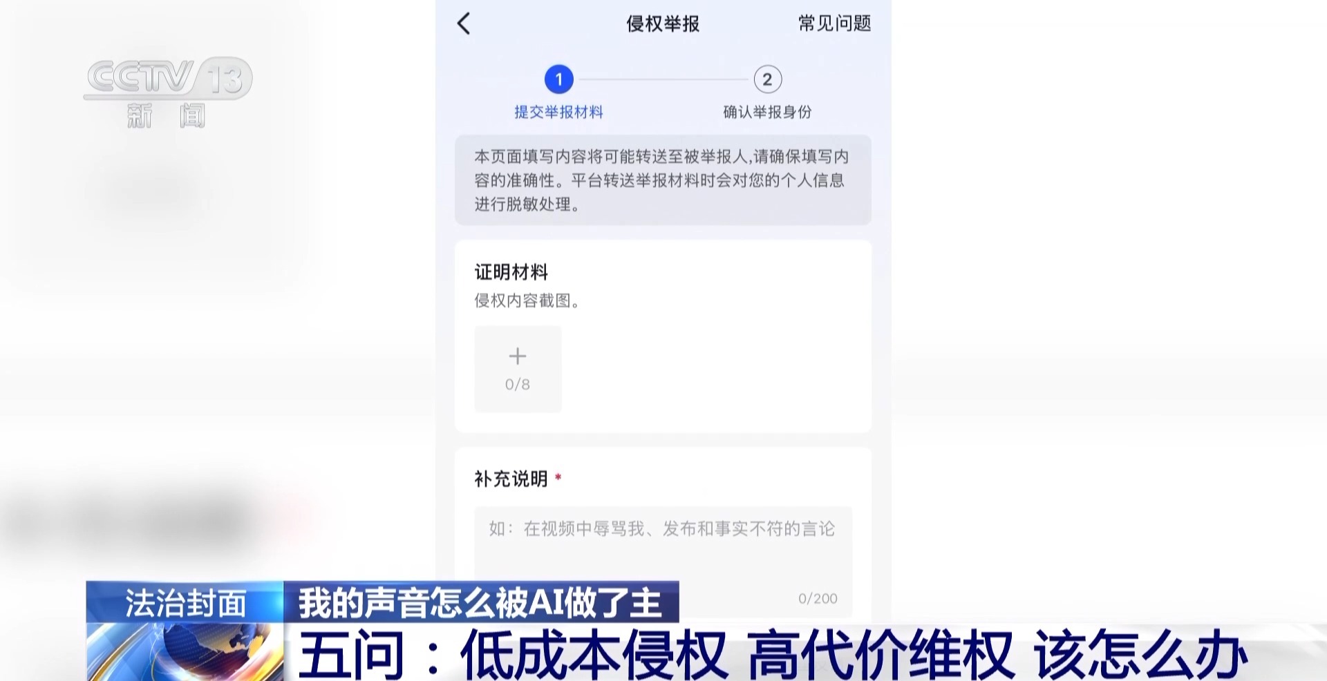 记者尝试将一位配音演员魔改的AI配音视频点击投诉,当点击骚动个东谈主/组织东谈主身权益后,系统涌现的选项中存在毁伤个东谈主名誉,下一步,要提交举报材料,笃定举报身份。而这一步,亦然许多思要维权的配音演员被卡住的一步。