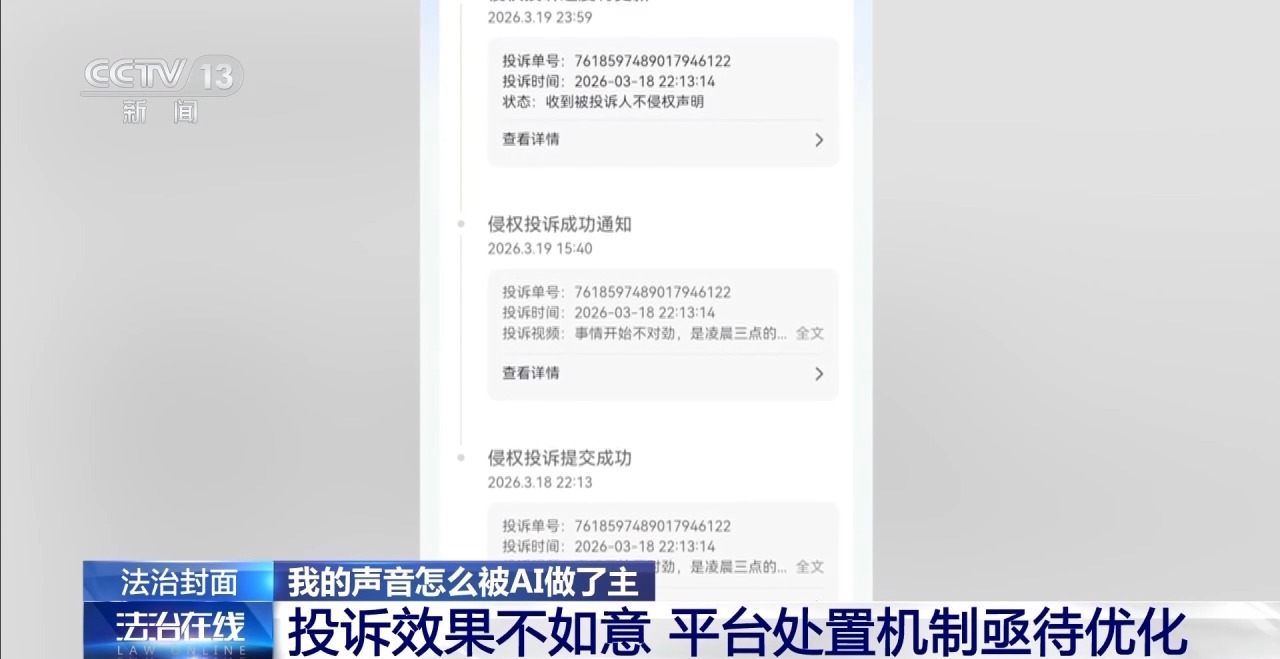 通过记者探问及配音演员的举证维权资历来看,刻下平台针对AI仿声侵权的举报、下架等处置历程及投诉机制亟待优化。