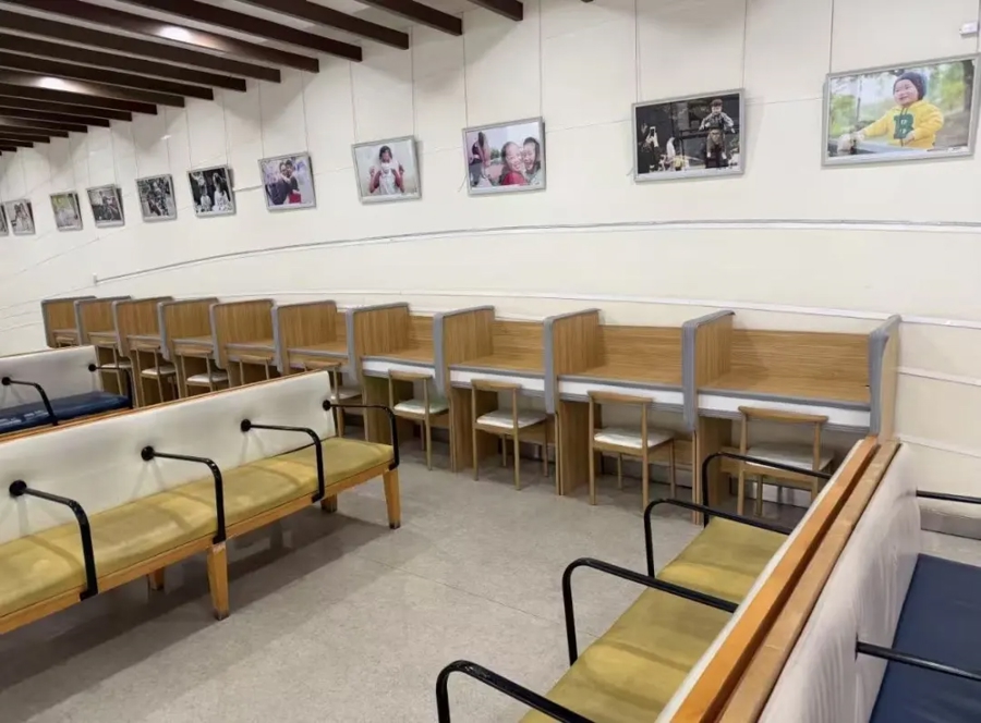 初志很求实:是因为病院责任主谈主员发现,傍晚和周末就诊岑岭,学龄孩子常常跪在地上,趴在椅子上写功课,既不卫生也不安全。另外,家长抱着电脑没处办公,吃个饭,冲个奶粉也不简短。