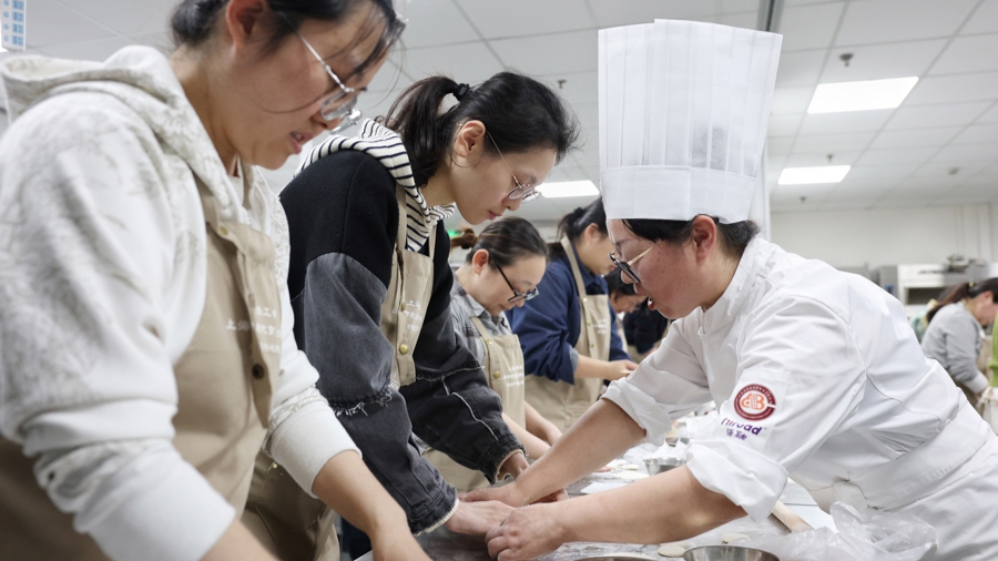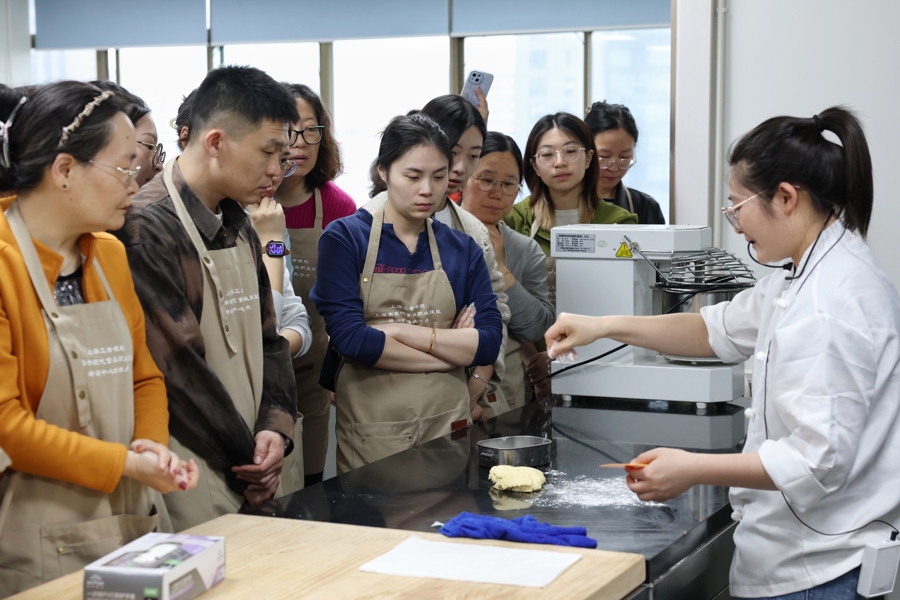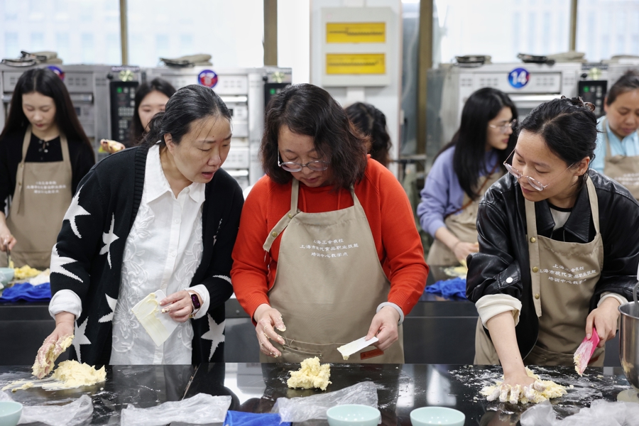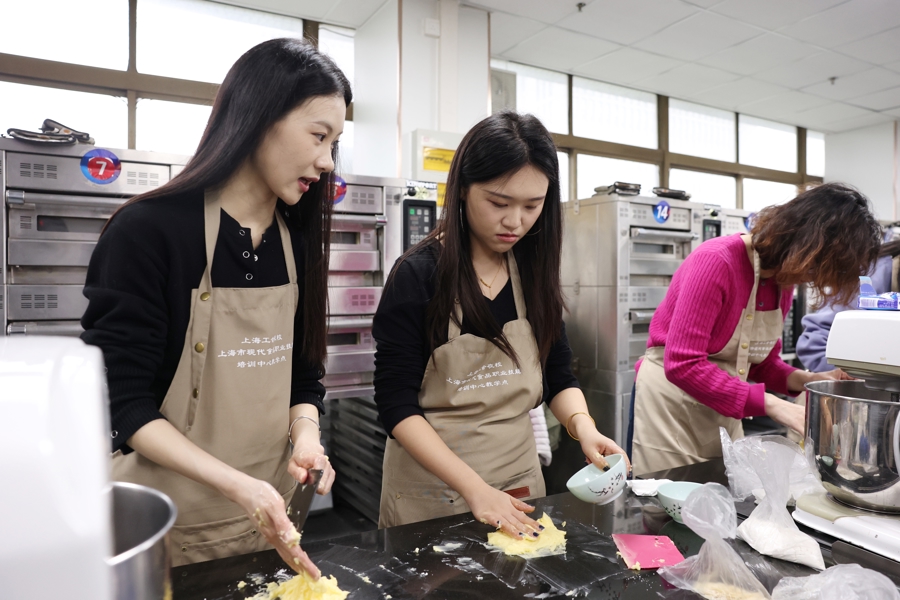 “吃杏仁饼干也有套路,合适四五点钟的下昼茶技术,不行就着卡布奇诺,要搭配红茶,显得愈加清亮。”课堂上,大国工匠、上海市当代食物事业手段培训中心校长干文采边提点学员烘焙的重点,边不失幽默地论说何如试吃杏仁饼干。教室里,每位学员的台面上都摆放着一台厨师机,四周烤箱环绕。