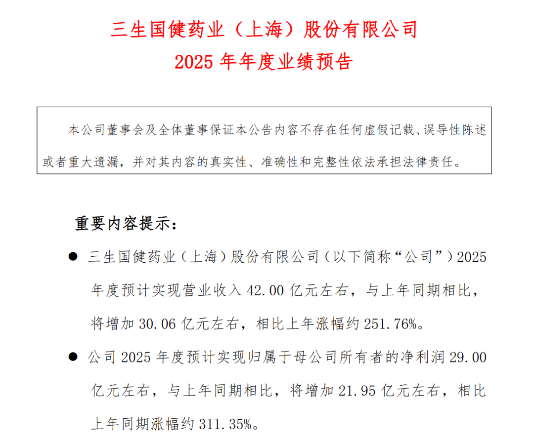曾在2025年创下国产创新药授权出海首付款纪录的三生国健(688336),公布了2025年年度业绩预告。