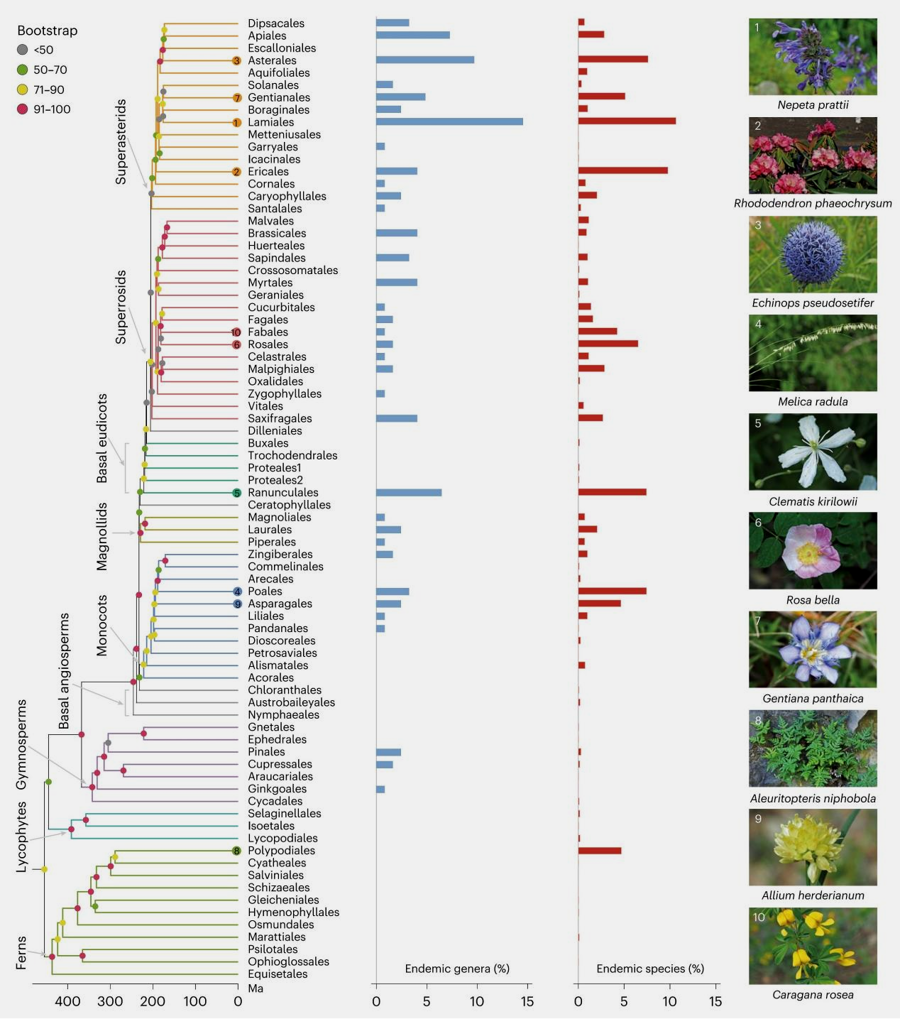 围绕这一问题,想到团队基于多年的意境拜谒与网罗责任,构建了现在取样最全的中国维管植物生命之树,涵盖通盘科、3029属(99%)、16585种(53%),正规杠杆炒股平台其中包含6265个中国私有种。联结140余万条物种分散纪录,团队附属与种两个维度,系统领路了中国维管植物的物种丰富度、系统发生万般性及系统发生私有性情局,并评估了私有中心在国度和巨匠保护体系中的代表性与隐蔽经过。