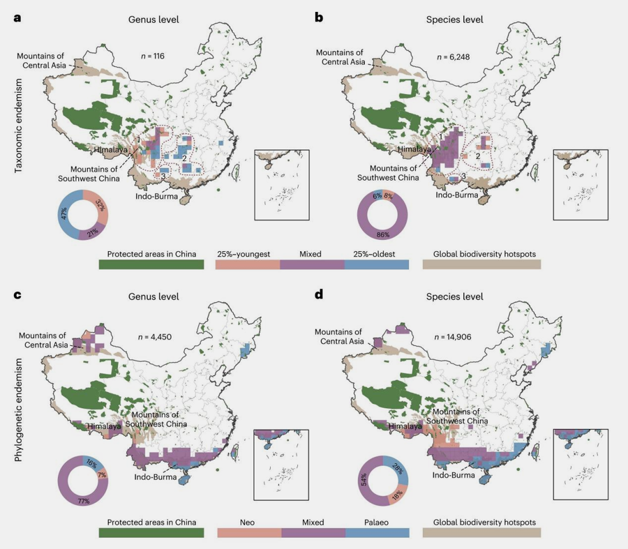 想到发现,中新世与更新世区分是私有属与私有种造成与快速分化的要害工夫。从空间形势看,基于私有类群识别的私有中心联结于横断山区、华中及滇黔桂喀斯特区域,而系统发生私有中心则广布于中国南部、西南,以及天山-阿尔泰山和长白山等区域。两类私有中心在空间分散上显贵错位,指示保护缱绻中需兼顾物种数目与演化历史两个维度。